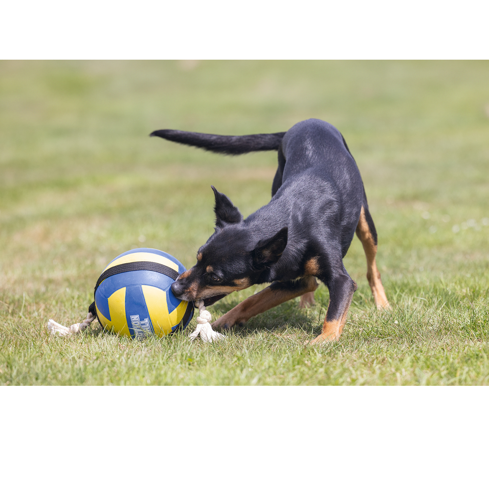 Breng samen met je hond actie in de tent met de Action volleybal met touw. Klein van stuk, groots in speelplezier!