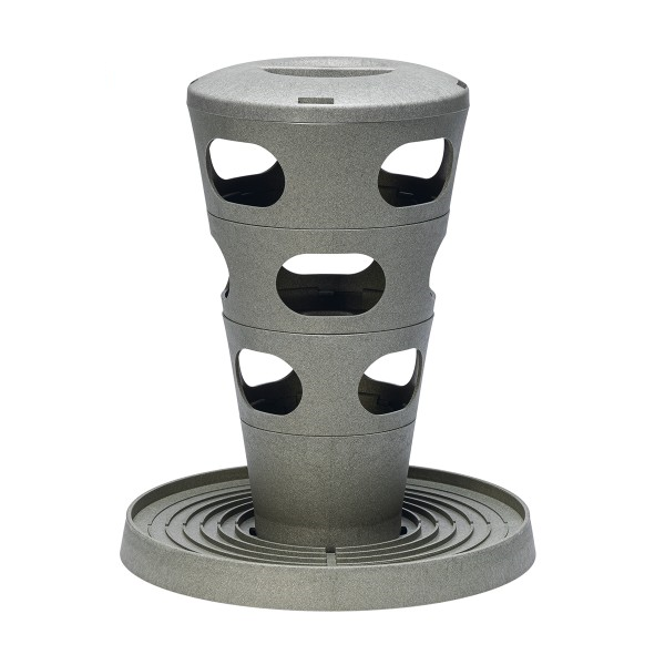 kan de dop aan de bovenkant worden opengedraaid, zodat de toren kan worden gevuld. De bodemplaat is voorzien van afwateringskanalen die voor een goede afvoer van het regenwater zorgen. De vier gaten in het midden van de bodemplaat kunnen worden gebruikt om de voertoren vast te zetten in de grond. Vaatwasser bestendig op ECO-stand (50°C).