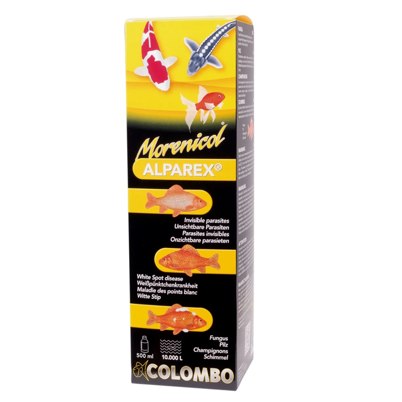 Alparex is werkzaam tegen onzichtbare parasieten welke een grauwsluier op de vissen veroorzaken, zoals Ichtyobodo, Chilodinella en Trichodina. Bovendien worden witte stip en schimmel effectief behandeld.