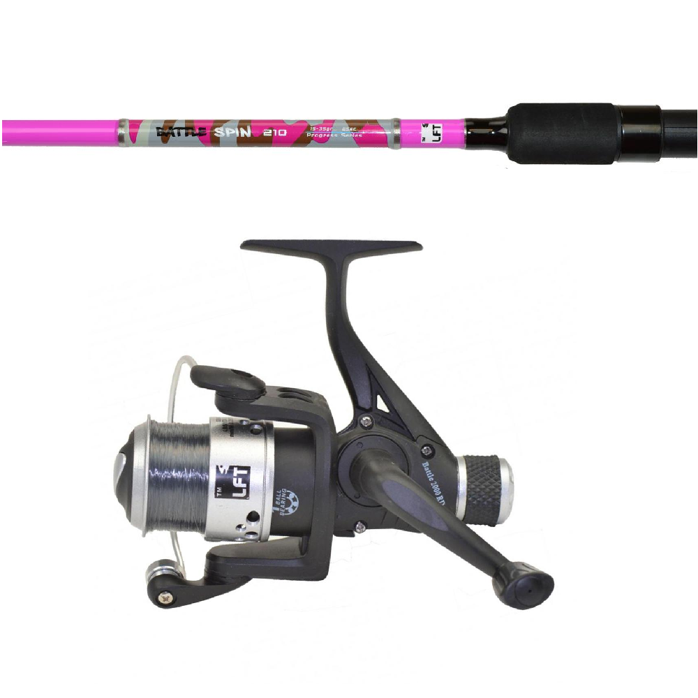 De LFT Battle Spin 210 is de ideale keuze voor beginnende vissers. Deze 2-delige spinhengel heeft een lengte van 2,10 meter en is geschikt voor verschillende vistechnieken. De roze camouflagemotieven geven de hengel een trendy uiterlijk. De set wordt geleverd met de LFT Battle molen B-2000RD, zodat je direct aan de slag kunt.