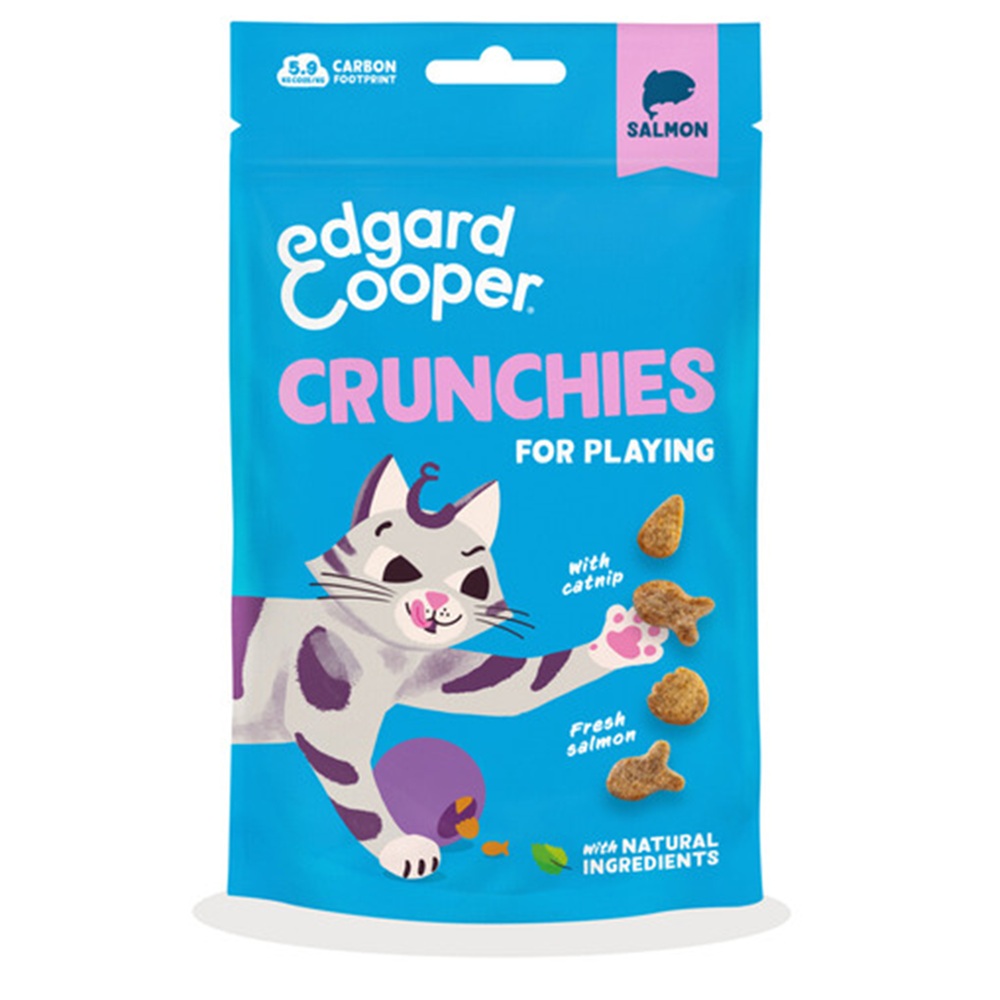 Edgard & Cooper Kat Adult Crunchies Zalm 50g – Krokante speel-snacks voor slimme snorharen