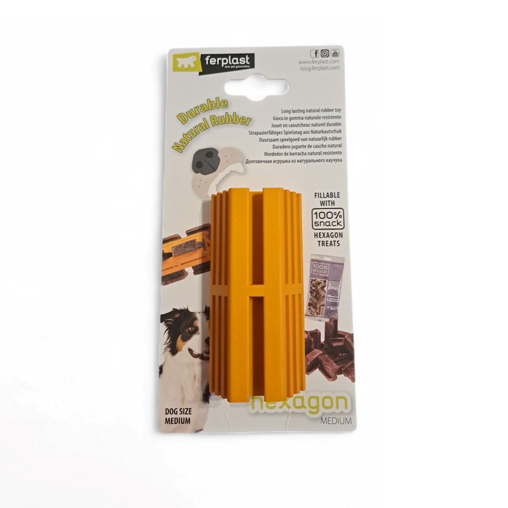 De Ferplast Hexagon Medium is stevig hondenspeelgoed van natuurlijk rubber, speciaal ontwikkeld voor middelgrote honden. Dankzij de duurzame structuur is het bestand tegen kauwen en draagt het bij aan een gezond gebit.