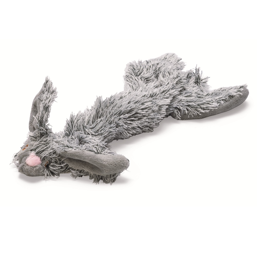 Zoek je een zacht hondenspeeltje zonder gedoe en zonder losse vulling door de kamer? Dan is de Flatino pluche konijn 30×13 cm een mooie uitzoeker. Gewoon in je winkelmand gooien, dan kan jouw hond straks mooi spelen en slepen.
