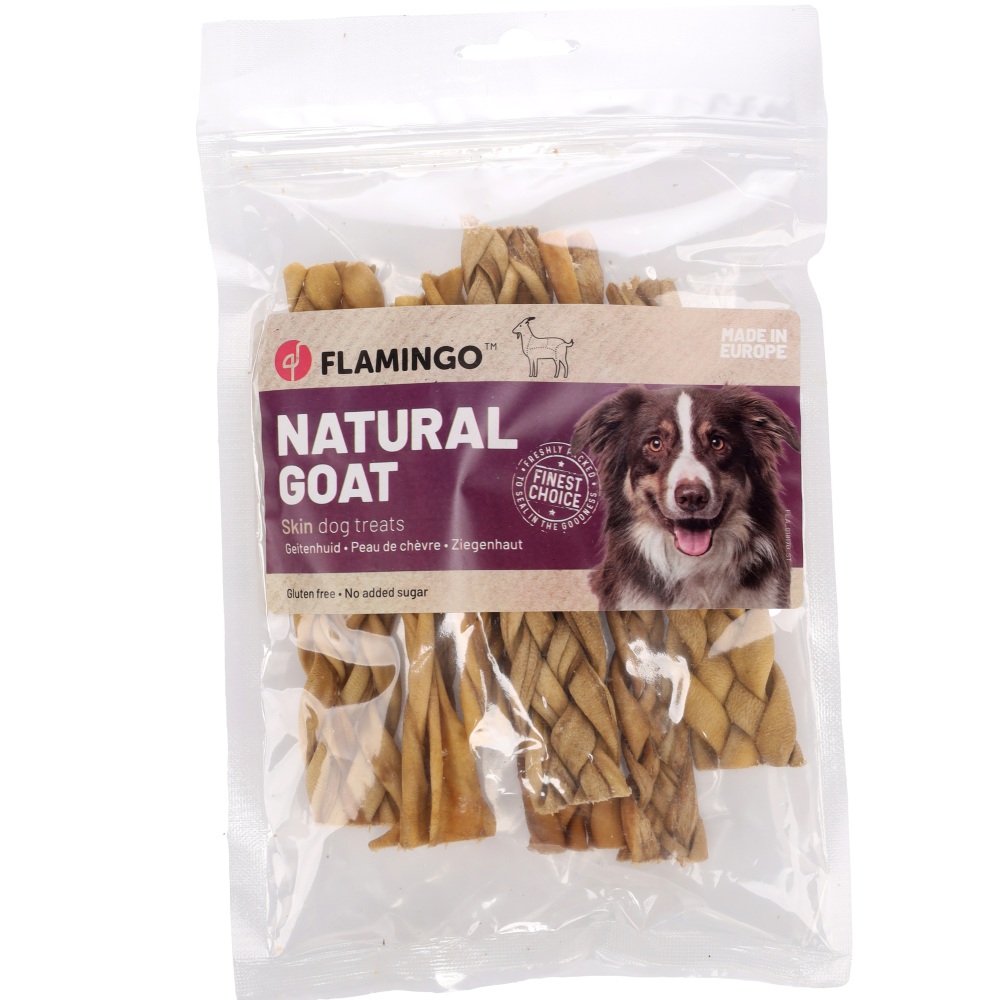 Geitenhuid gevlochten breed 100 gram – Stevig kauwplezier voor je hond