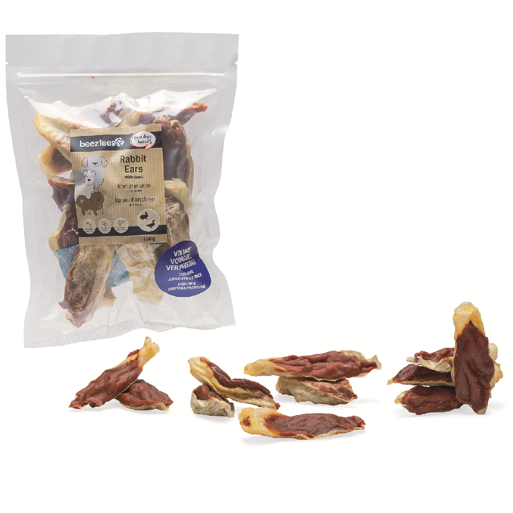 Gevulde konijnenoren met eend volume voordeel 250 gram