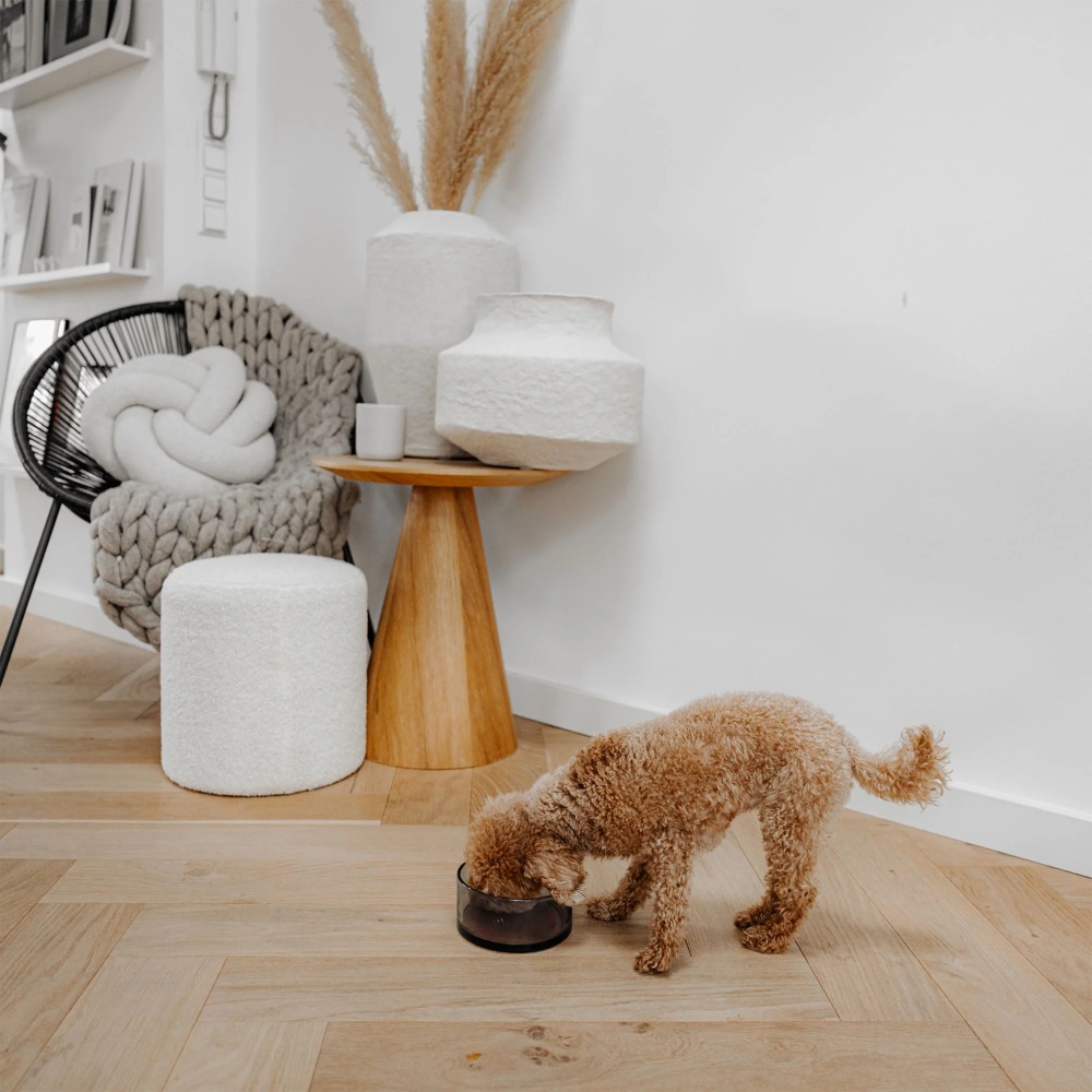 Met de Glazen hondenvoerbak zwart M 1000ml DAWN haal je een voerbak in huis die niet alleen netjes staat, maar ook gewoon prettig werkt in het dagelijks gebruik. Het zware glasmateriaal zorgt voor stabiliteit tijdens het eten, waardoor de bak minder snel verschuift. Dat is fijn voor honden die enthousiast happen alsof de buurman anders mee-eet. En doordat glas geur- en smaakneutraal is, blijft de voerbak ook gewoon fris in gebruik.