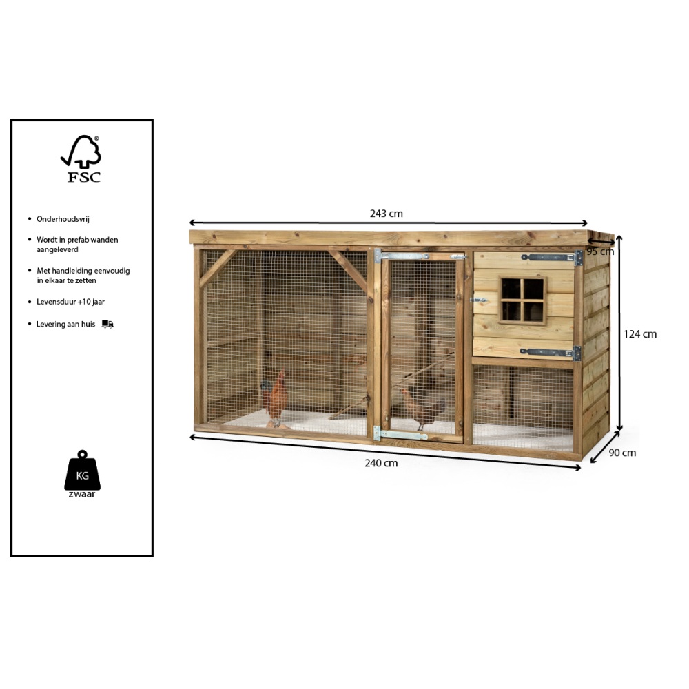 Dankzij de duurzame materialen heeft dit kippenhok een levensduur van minimaal 10 tot 15 jaar.