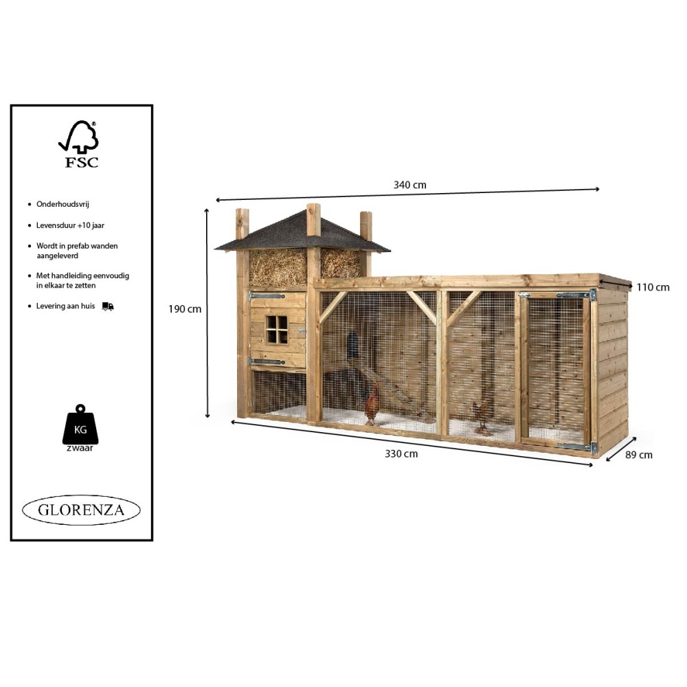 Glorenza Kippenhok Hooiberg Sofie 340x110x190 cm – Luxe hooiberg met ruime overdekte ren