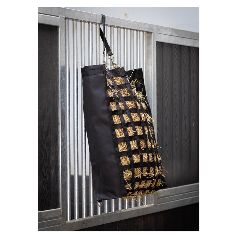 De sterke 600D nylon hooitas Adagio is een zogenaamde “slow feeder”. Door het fijne maassysteem (5CM*5CM) wordt de snelheid van de ruwvoeropname vertraagd en de fourage-tijd verlengd.