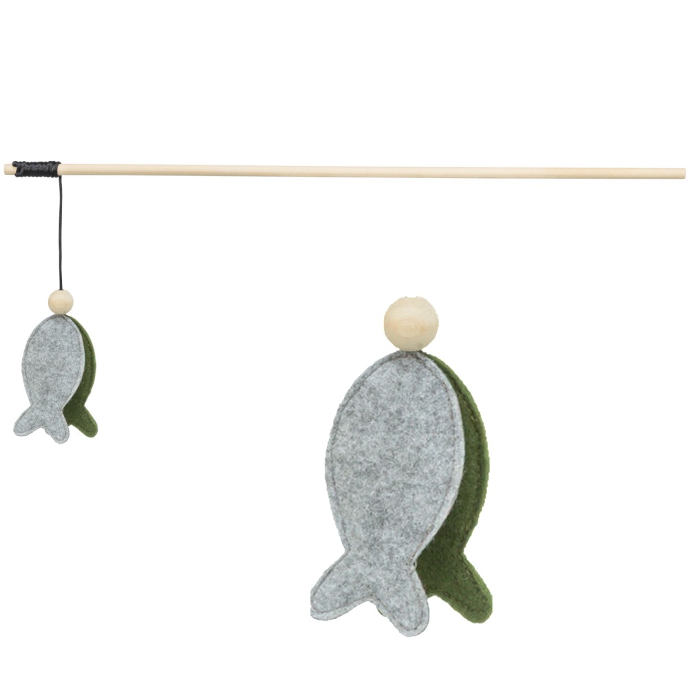De combinatie van een houten hengel en een vilten visje met kattenkruid maakt dit speeltje extra aantrekkelijk. Ideaal om je kat actief te houden en verveling tegen te gaan.
