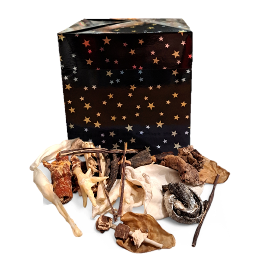 Maak deze kerst onvergetelijk voor jouw trouwe viervoeter met ons exclusieve kerstcadeau, prachtig verpakt in een luxe geschenkdoos! Deze smakelijke verrassing is met zorg samengesteld om je hond te verwennen met heerlijke, natuurlijke lekkernijen. Wat zit er in deze feestelijke box?