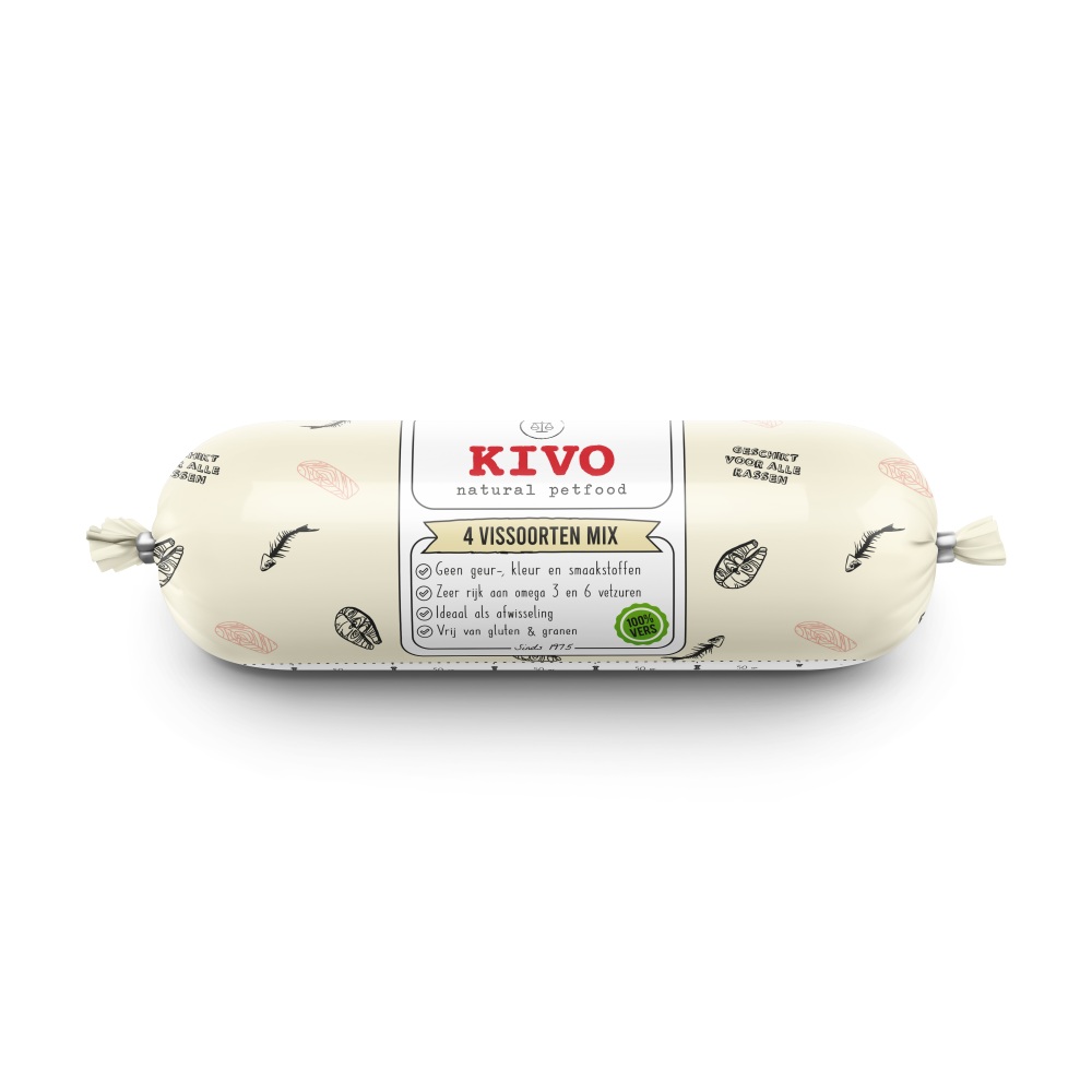 Deze Kivo 4 Vissoorten Mix 500 gram is zo’n worst waar je hond niet alleen blij van wordt, maar ook nog eens beresterk van blijft. Boordevol omega 3, knetterveel vitamine D en lekker puur van kwaliteit. Zie het als een “visvitamineboost” waar je hond elke week van opknapt—zonder gedoe, gewoon lekker smullen.