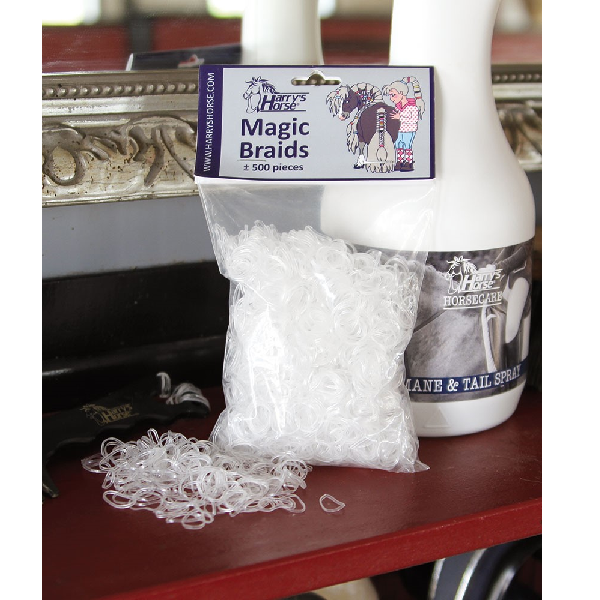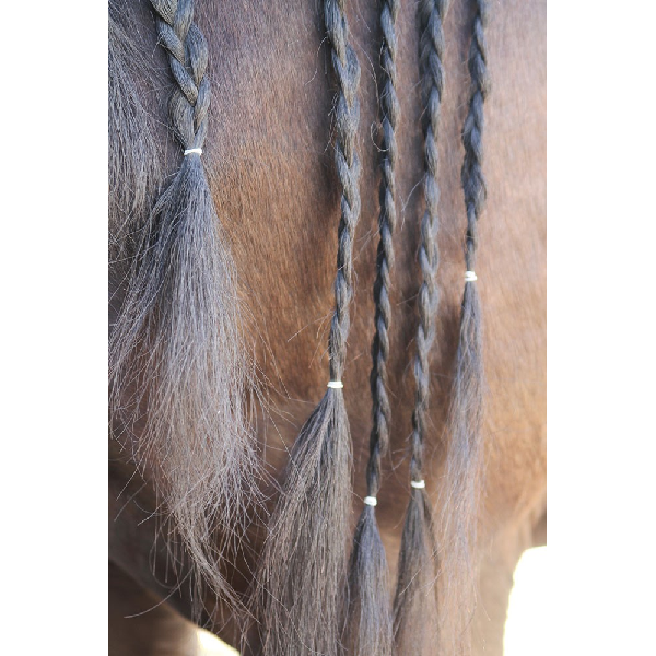 Superfijne elastiekjes voor het invlechten van de manen. Extra sterk, flexibel en herbruikbaar! Nu in dunne, transparante uitvoering voor multifunctioneel gebruik in verschillende kleuren manen.