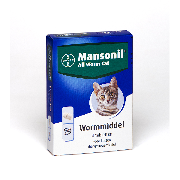 1 tablet Mansonil All Worm Cat per 4 kg lichaamsgewicht
