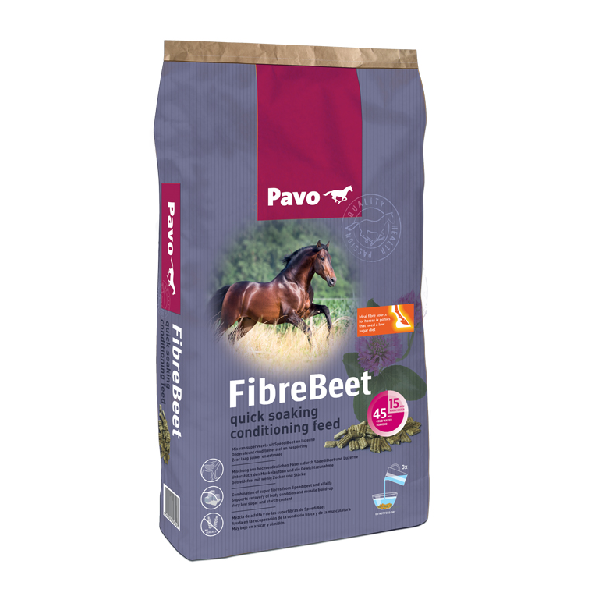 Sommige paarden zijn moeilijk in conditie te houden: ze vallen in en de bespiering neemt af. Het bijvoeren met krachtvoer is niet altijd de oplossing. Pavo FibreBeet is een zorgvuldig samengestelde combinatie van SpeediBeet, luzerne en zeer goed verteerbare vezels uit sojahullen met een vleugje Fenegriek voor de smakelijkheid. De kwalitatief hoogwaardige eiwitten uit luzerne maakt FibreBeet de ideale ruwvoeraanvulling voor magere, schrale (sport)paarden om weer perfect in conditie te komen. Pavo FibreBeet is volledig graanvrij en bevat bovendien een zeer laag suiker- en zetmeelgehalte.