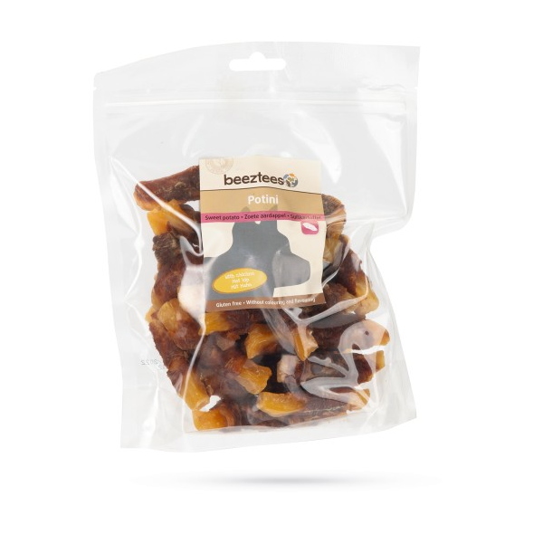 Op zoek naar een lekkere snack voor jouw hond? Zoek dan niet verder. Deze Beeztees Potini Sticks Kip zijn een heerlijk tussendoortje of beloning voor jouw hond! Deze sticks zijn gemaakt van zoete aardappel met daaraan kip toegevoegd. Het is een natuurlijke snack, die bovendien ook glutenvrij is en bevat geen kleur- en smaakstoffen.