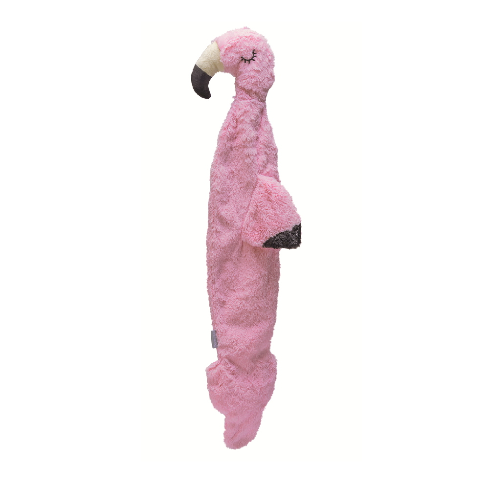 Beeztees Puppy Flatino Flamingo is speciaal ontwikkeld als puppy speelgoed. Flatino Flamingo is gemaakt van heerlijk zacht pluche, waardoor jouw pup deze niet alleen als speelgoed, maar ook graag als puppy knuffel zal gebruiken. De Flatino heeft een zachte gevulde kop, maar geen vulling in het lijfje. Daarnaast is er geen piep in de honden knuffel verwerkt, waardoor de knuffel geen geluid maakt als ermee gespeeld wordt. Zo kan jouw pup uren en vooral rustig, knuffelen en spelen met zijn of haar Flatino Flamingo.