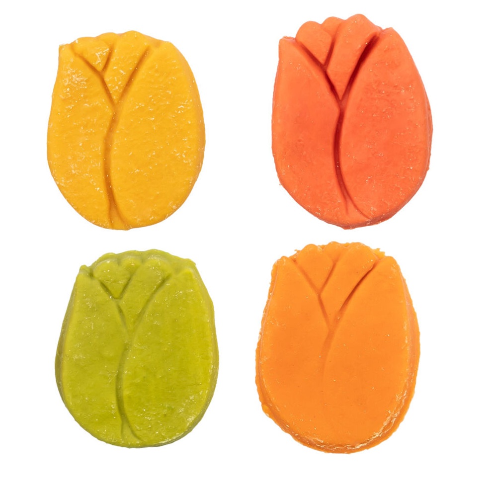 Je koopt de Roos met kipfilet per stuk (30 gram) en hij is er in geel, oranje, rood of groen. Ziet er gezellig uit, ruikt lekker, en je hond? Die is vooral druk met opeten. 😉
