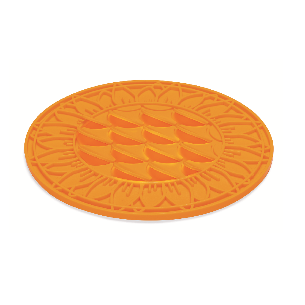 Met Beeztees Likmat Zonnebloem bereid je een heerlijke traktatie voor jouw hond. Deze likmat biedt niet alleen een leuke bezigheid, maar zorgt er ook voor dat jouw hond langer kan genieten van zijn of haar snack. De likmat voorkomt namelijk het schrokken van voedsel, doordat het voer in de uitsparingen van de mat gaat zitten. Het likken aan de mat biedt jouw hond tevens ontspanning en door de textuur van de likmat wordt de tong gereinigd. Extra leuk is dat je het voer onder de lamellen kunt verstoppen van de likmat. De likmat is gemaakt van siliconen en is voorzien van zuignappen aan de onderkant om verschuiving te voorkomen. Vries de likmat samen met de vulling in en geef jouw hond heerlijke verkoeling tijdens warme zomerdagen. De likmat kan worden gereinigd in de vaatwasser.
