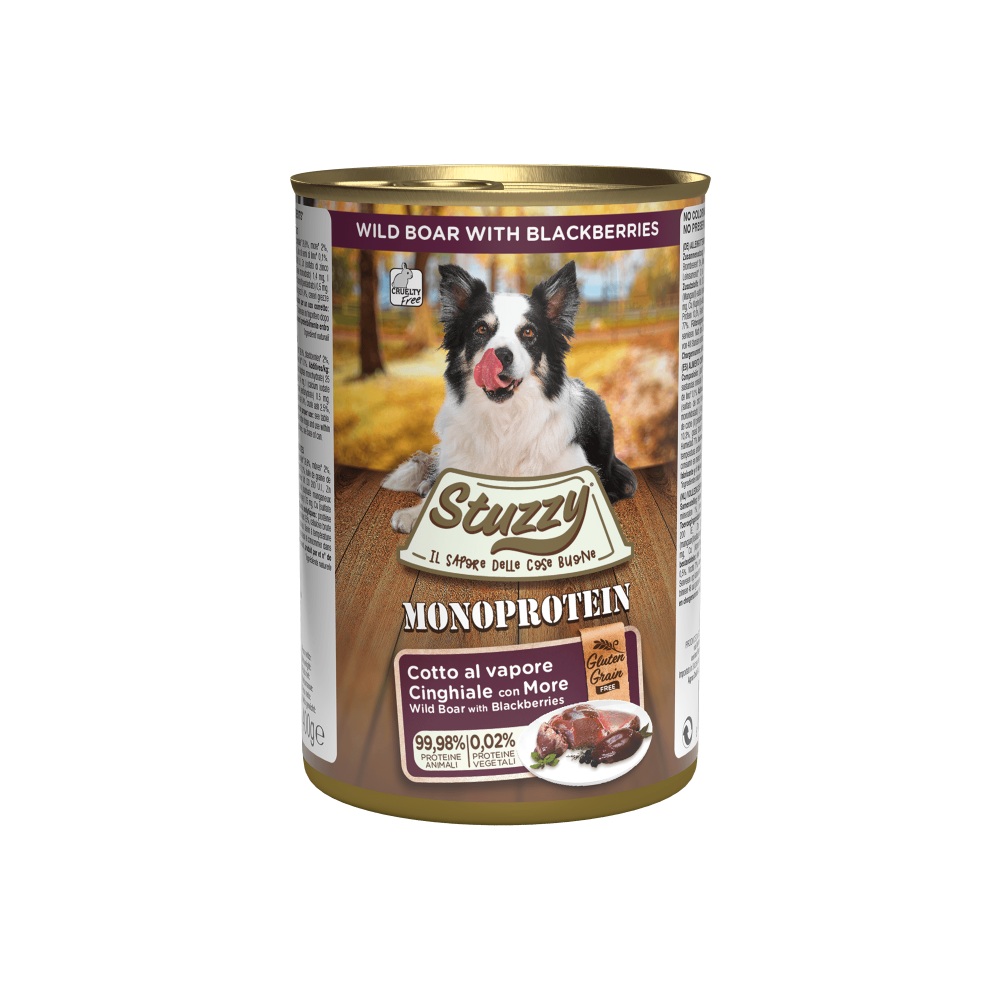 Voor de fijnproever met een gevoelige maag: Stuzzy Hond Monoprotein Zwijn met bramen is een heerlijke, graanvrije maaltijd boordevol natuurlijke kracht. Gemaakt met maar één dierlijke eiwitbron (zwijn) – ideaal voor honden die niet overal tegen kunnen, maar wél van lekker eten houden.
