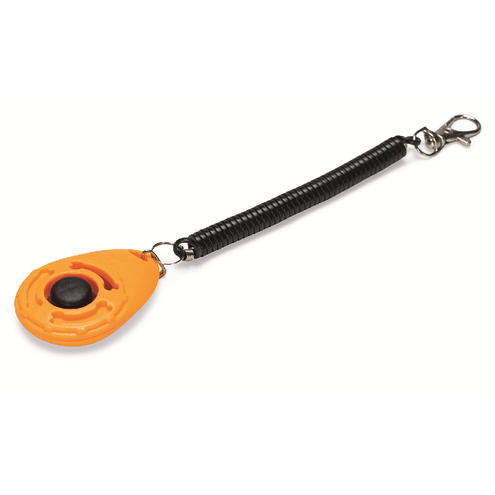 De Training Clicker Jur is de sleutel voor effectieve clicker training. Een honden clicker kan helpen bij het aanleren van nieuwe commando’s aan jouw hond. Deze training clicker is gemaakt van plastic, hierdoor licht van gewicht en eenvoudig hanteerbaar. Wanneer je de grote, responsieve knop indrukt met je duim, zal er al snel een klikgeluid volgen. Als je gaat trainen met jouw hond, zal hij of zij al snel dit geluid associëren met goed gedrag. Dat is namelijk waar een honden clicker voor bedoeld is. De toevoeging van de elastische polsband zorgt ervoor dat je de clicker makkelijk mee kan nemen. Door middel van de karabijnhaak kan je er ook voor kiezen de clicker aan bijvoorbeeld een beloningstasje te hangen. Zorg ervoor dat je je goed inleest of instructies opvolgt van een hondentrainer voordat je start met clicker training.