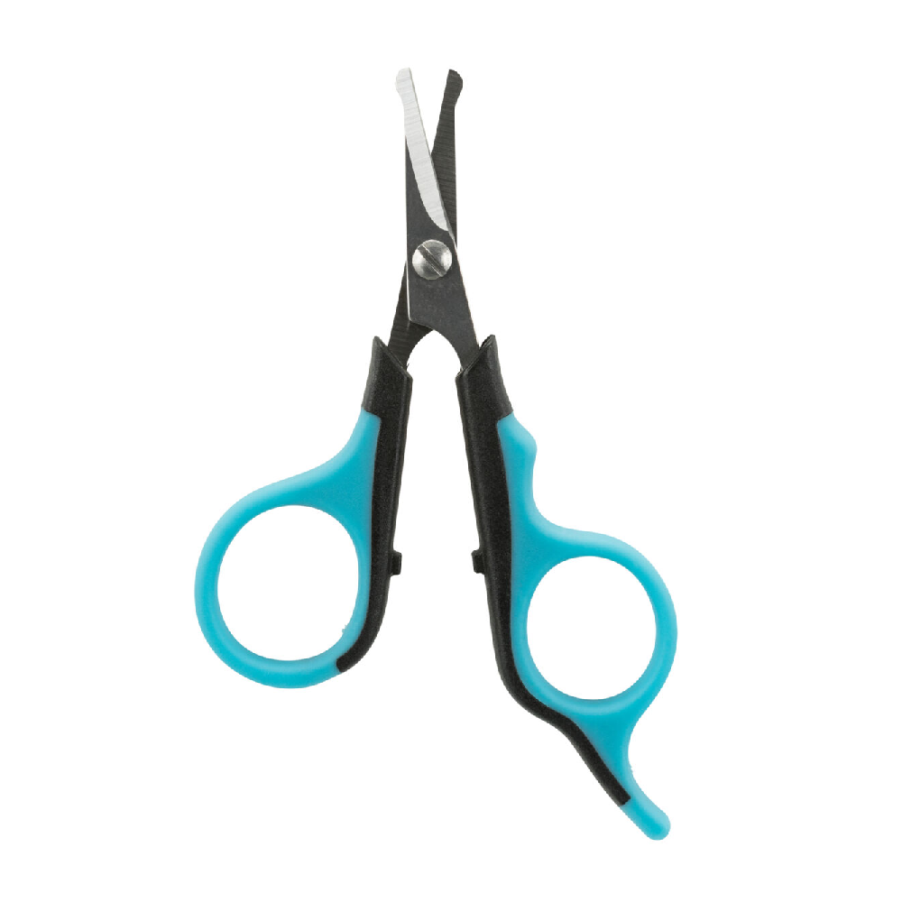 Het kunststof handvat is voorzien van een rubberen coating voor een comfortabele en stevige grip tijdens het gebruik. Met deze schaar kun je nauwkeurig en veilig de vacht rond het gezicht en de poten van jouw huisdier trimmen, waardoor ze er netjes en goed verzorgd uitzien zonder het risico op verwondingen. Het is een essentieel hulpmiddel voor de algemene verzorging van jouw huisdier.