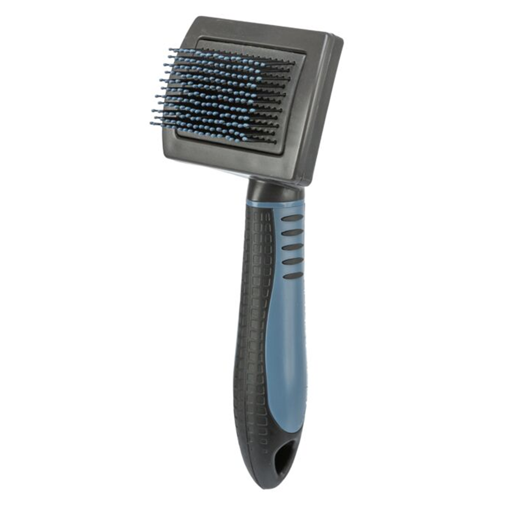 Het ergonomische kunststof handvat met een rubberen coating biedt extra grip, zodat je de borstel eenvoudig kunt hanteren, zelfs tijdens langere verzorgingssessies. Ideaal voor zowel honden als katten, en geschikt voor dieren met verschillende vachttypes.