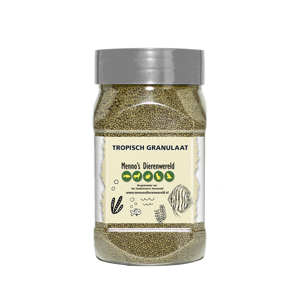 Tropisch granulaat 330 ml is een compleet en uitgebalanceerd hoofdvoeder in fijne korrelvorm, speciaal ontwikkeld voor alle soorten tropische siervissen. Dit zinkende voer bereikt ook de midden- en onderlaag van het aquarium, waardoor het perfect is voor gemengde visbezetting, waaronder bodembewoners.