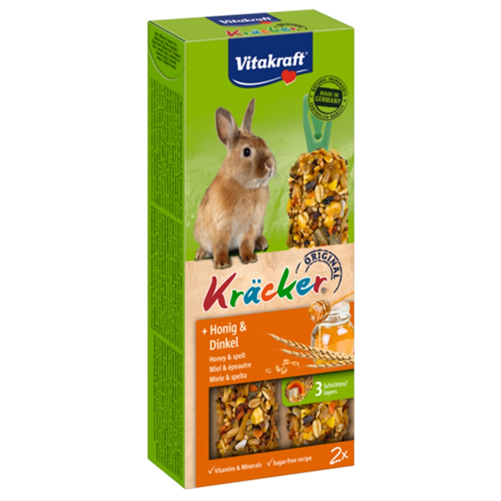 Vitakraft Dwergkonijnenkracker Honing 2in1 – knabbelplezier voor je konijn!