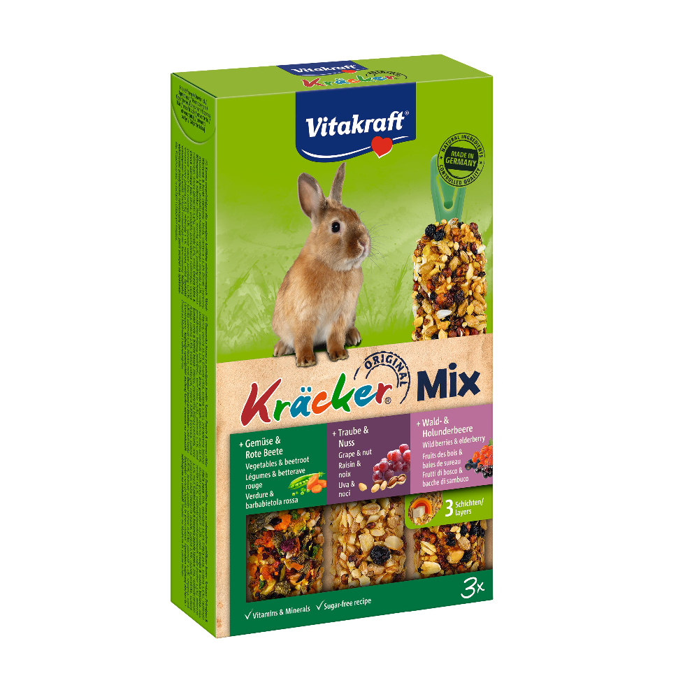 Vitakraft Dwergkonijnenkracker Mix 3in1 Noot, Bes & Groente – drie smaken, één groot knabbelplezier!