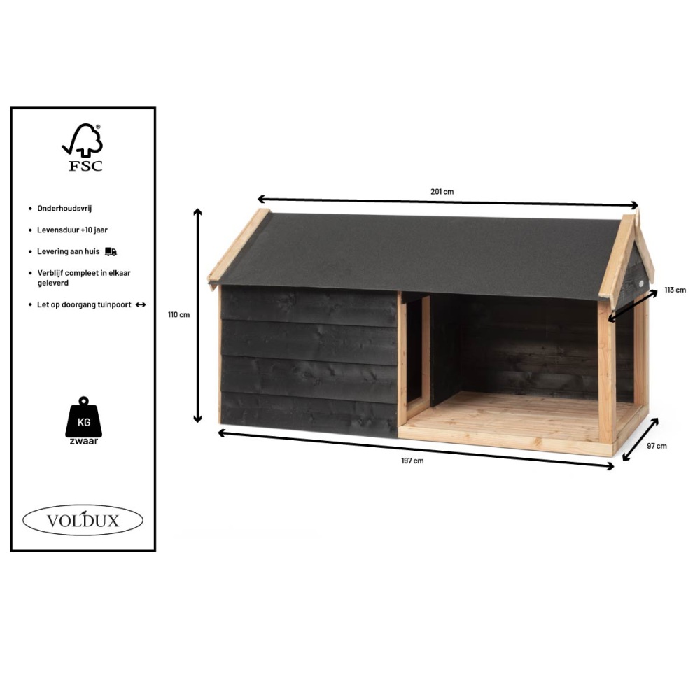 Voldux Hondenhok Stijn 201x113x110 cm – Luxe hondenhok met veranda