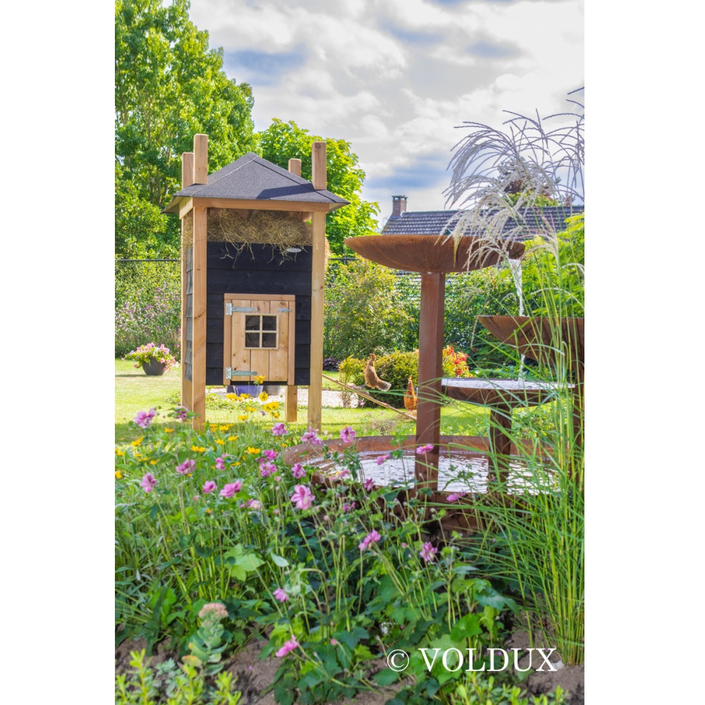 Zo, dit is er eentje voor de liefhebber van stijl én degelijkheid. De Voldux Hooiberg Teun 125x125x220 cm is een prachtig kippen nachthok in klassieke hooibergstijl, afgewerkt met hoogwaardige materialen. Een echte blikvanger in de tuin, maar vooral een fijne plek voor je kippen.