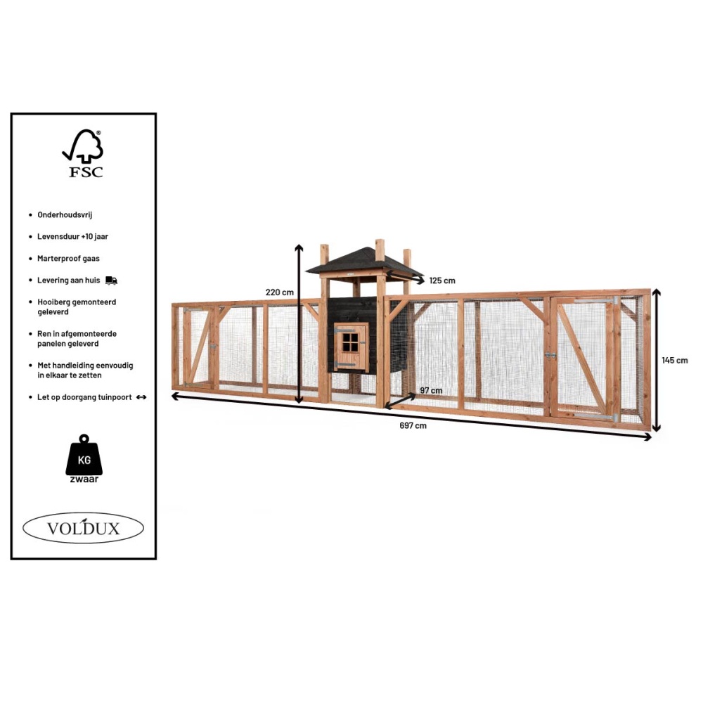Voldux Hooiberg Ties XXL 697x125x220 cm – Luxe kippenvilla met dubbele XXL ren