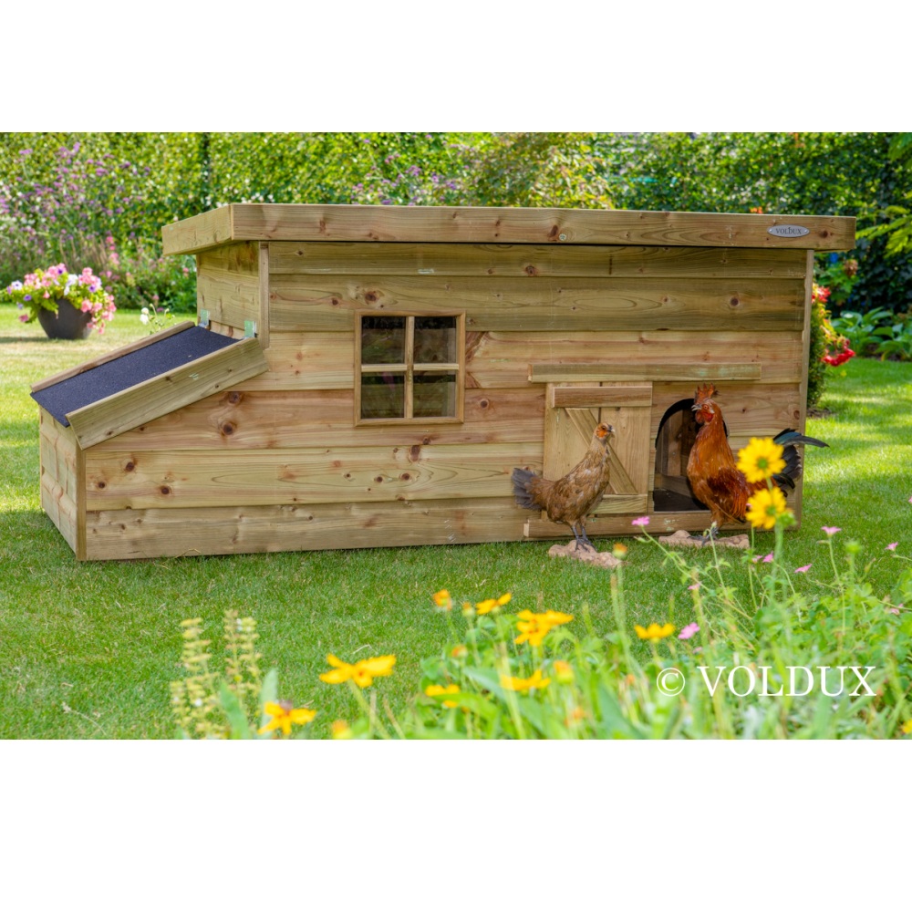 Zoals je van Voldux mag verwachten is dit kippenhok handgemaakt door gespecialiseerde vakmannen en gebouwd van stevige materialen. Dat betekent: onderhoudsvrij, duurzaam en klaar voor jarenlang kippenplezier.