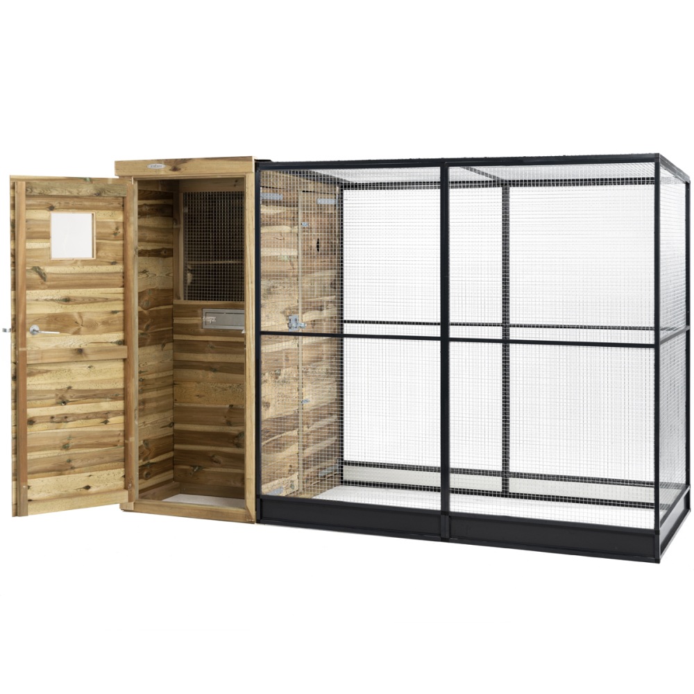 - Ruime volière met grote aluminium vlucht