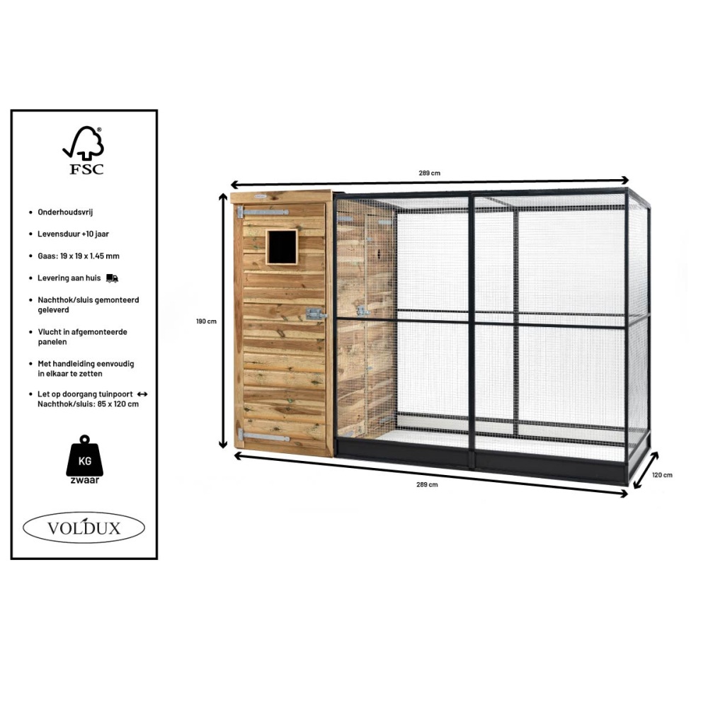 Waarom kiezen voor Voldux Volière Thomas Links 289x120x190 cm?