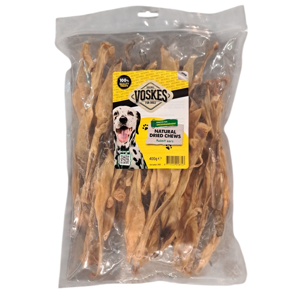 Voskes Konijnenoren 400 gram – een natuurlijke, luchtige kauwsnack