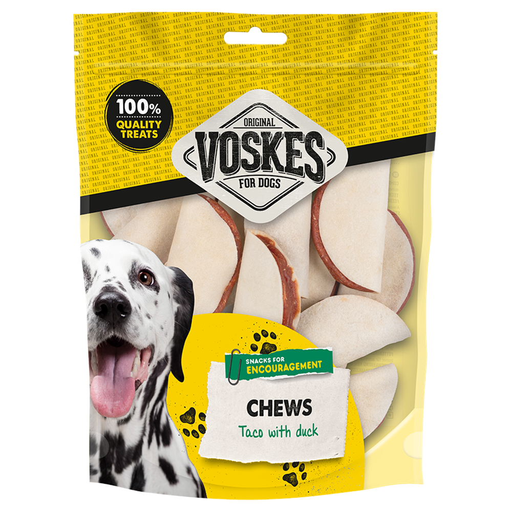 Laat jouw hond genieten van deze smakelijke en gezonde snack. Bestel nu de Voskes Taco met Runderhuid en Eend en zie hoe jouw viervoeter ervan smult!