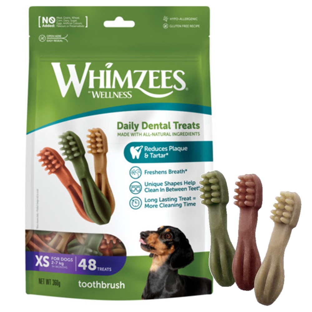 Whimzees Tandenborstel XS 48 stuks – kauwsnack in tandenborstelvorm (klein hondje, grote glimlach) 😁